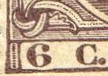 The 6c violet brown stamps commonly display a defective or worn plate causing a line break over the denomination value ‘6’ This defect occurs variably at many locations within the plate. Similarly, the oval frame frequently appears broken. Stamps of this issue with an intact oval frame and unbroken line above the ‘6’ are less common than stamps showing the defect.