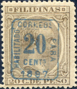 The surcharged postal issues were produced in Manila. The surcharge reads: HABILITADO CORREOS PARA 1897 (Enabled for postage 1897).